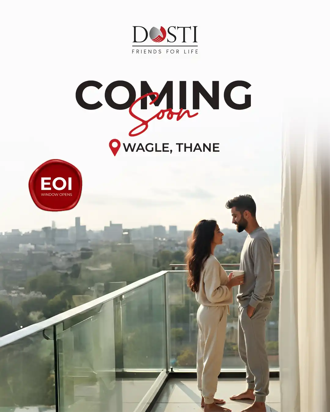 Welcome to Dosti Wagle Estate by Dosti Realty redefines urban luxury at Wagle Estate, Thane, with thoughtfully designed 2, 3, and 4 BHK residences. Spread across 2.39 acres, Dosti Wagle Estate rises elegantly with a landmark tower of 3B+7P+48 floors, blending modern architecture with intelligent planning. At Dosti Wagle Estate, every home offers ample natural light, cross-ventilation, smart features, and green living for a calm yet contemporary lifestyle. Residents at Dosti Wagle Estate enjoy premium amenities including a swimming pool, gymnasium, yoga and meditation zones, jogging and cycling tracks, amphitheatre, landscaped multipurpose lawn, and a dedicated toddler’s play area. Dosti Wagle Estate creates a vibrant community focused on wellness, leisure, and comfort. Strategically located, Dosti Wagle Estate offers seamless access to the Eastern Express Highway, LBS Marg, Ghodbunder Road, Thane Railway Station, and the upcoming Metro Line 4, making it an exceptional choice for refined living and wise investment.